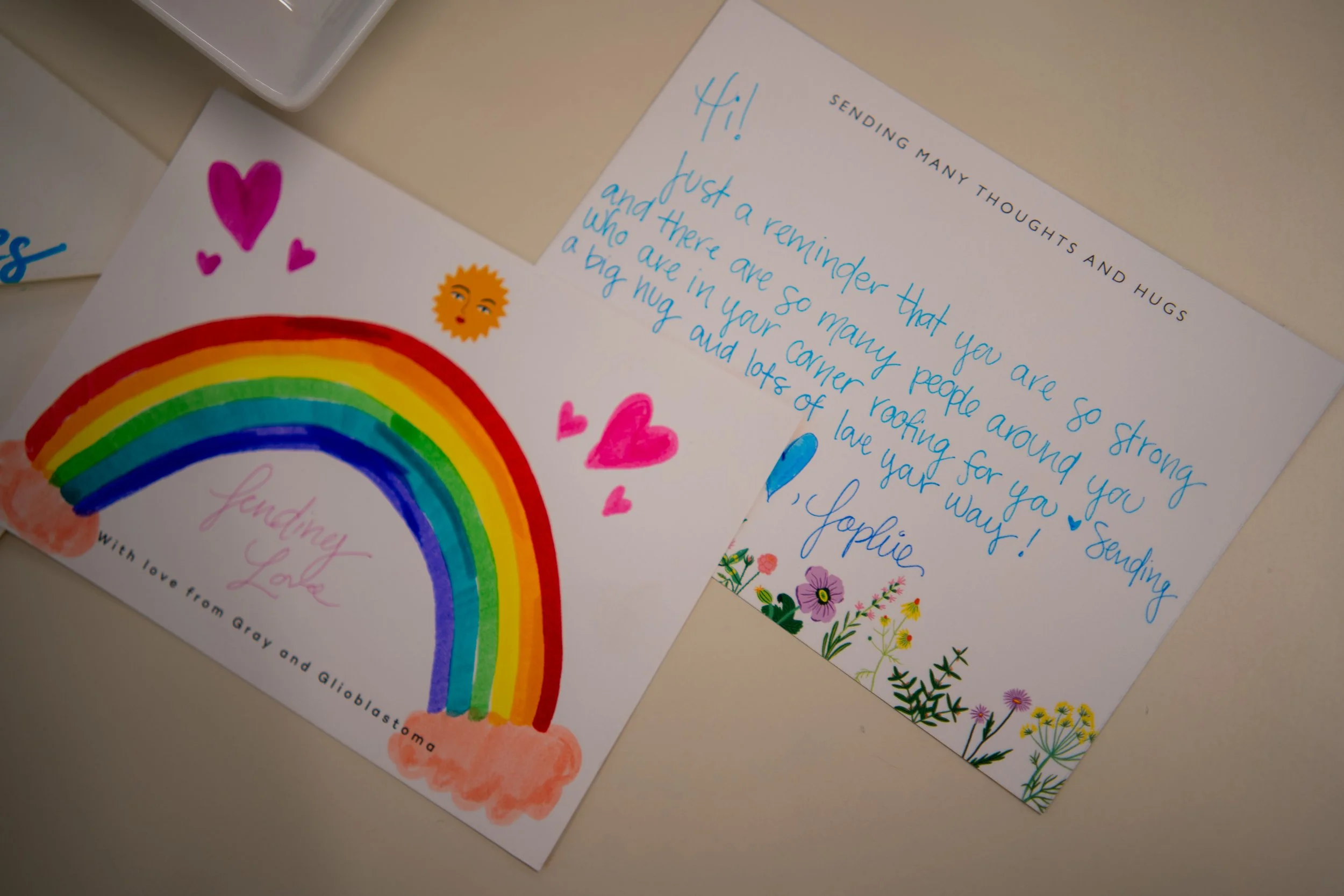 All events will feature card materials to decorate heartfelt cards and fill them with encouraging messages of love and support. Each card is a unique expression of compassion and solidarity, carefully crafted to bring support and smiles to its recipient. Throughout the year, we collect these beautiful cards and send them directly to glioblastoma patients, caregivers, and family members. These cards serve as a heartwarming reminder that you are never alone, and there is unwavering support for you every step of a GBM diagnosis.